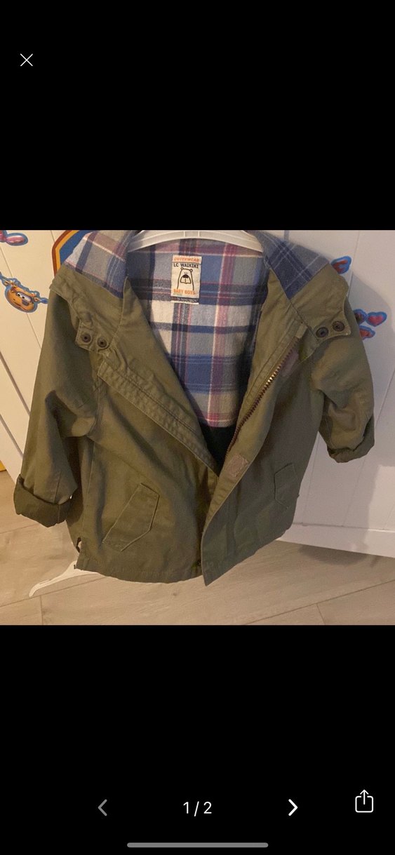 Düğmeli, geniş kesim erkek çocuk ceketi pamuklu kumaştan yapılmıştır. Haki renkte, yakası notched lapel ve desen içermeyen sokak stili için uygundur.