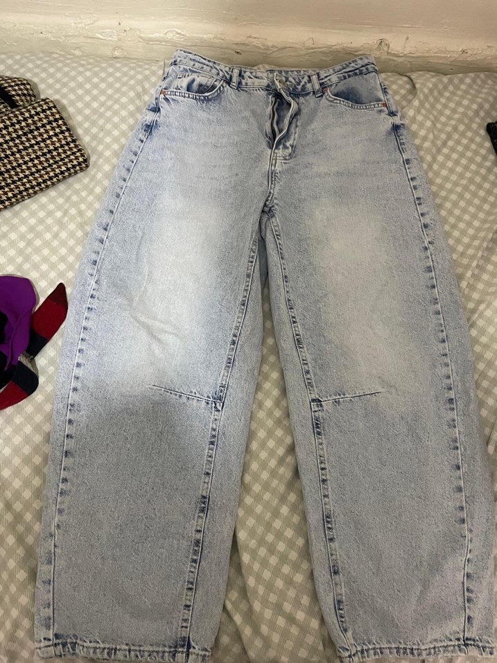 Düğmeli, geniş kesim mavi renkte kadın kot pantolon. Günlük kullanım ve sokak stiline uygun rahat tasarım. Defosuz 1 defa giyildi 38 beden İTSBASİC markasına ait