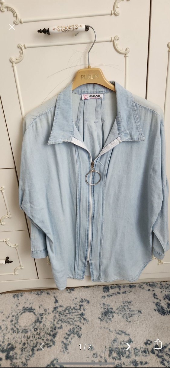 Bu günlük denim gömlek, geniş kesim, yakalı ve uzun kolludur. Düğmeli ön kısmı ve açık mavi rengiyle günlük kullanıma uygundur. ✨