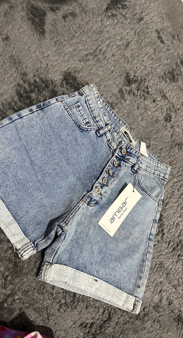 Düğmeli Geniş Kesim Mavi Denim Şort