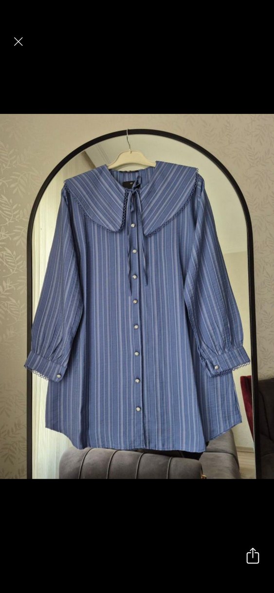 Navy mavi renkte, geniş yakalı ve düğmeli ön kısmı olan uzun kollu kadın gömleği. Rahat kesim ve yumuşak likra kumaştan üretilmiştir. Vintage ve normcore tarzda, ofis kullanımı için uygun.