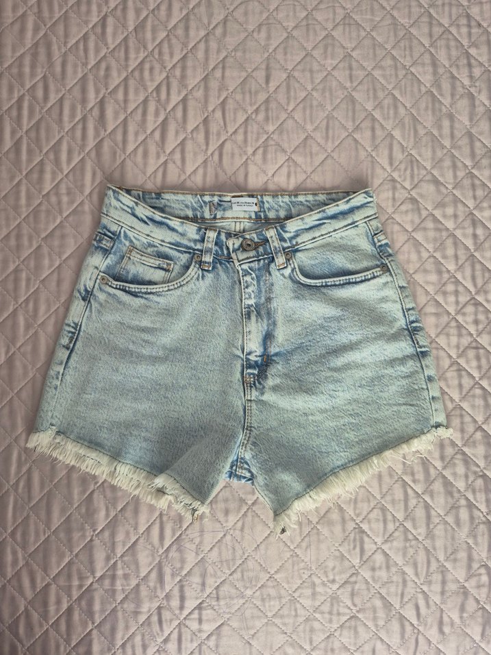 Düğmeli, gevşek kesim, kısa boy, pastel tonlarda batik desenli denim şort. Günlük rahat kullanıma uygun.