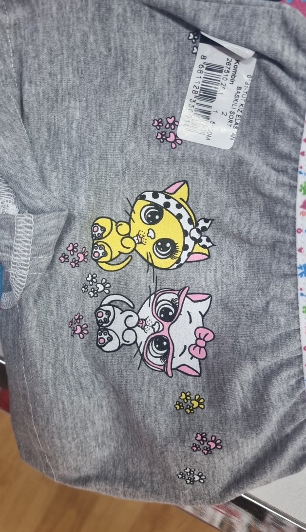 Gri renkli, baskılı iki sevimli kedi deseniyle süslenmiş, düğmeli çocuk iç çamaşırı, streetwear tarzında.bedenleri mevcuttur