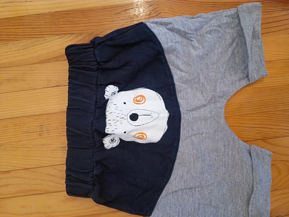 Düğmeli kapama ve baskılı ayı deseniyle gri renkte rahat ve sade bir köpek kıyafeti.