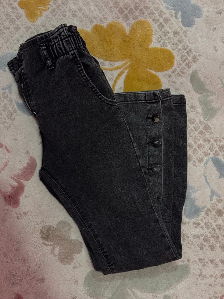 Düğmeli Gri Batik Desenli Bol Kesim Kot