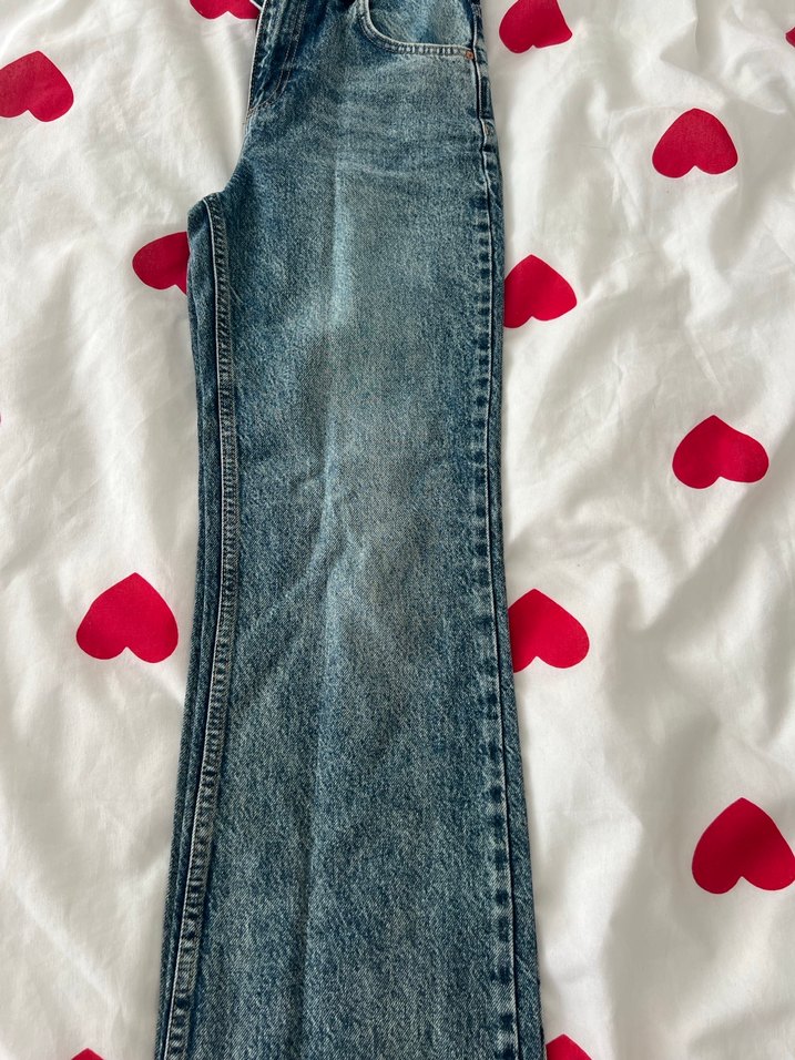 Düğmeli, gri batik desenli, mavi tonlarında, normal boy, kadın kot pantolon, günlük kullanıma uygun.