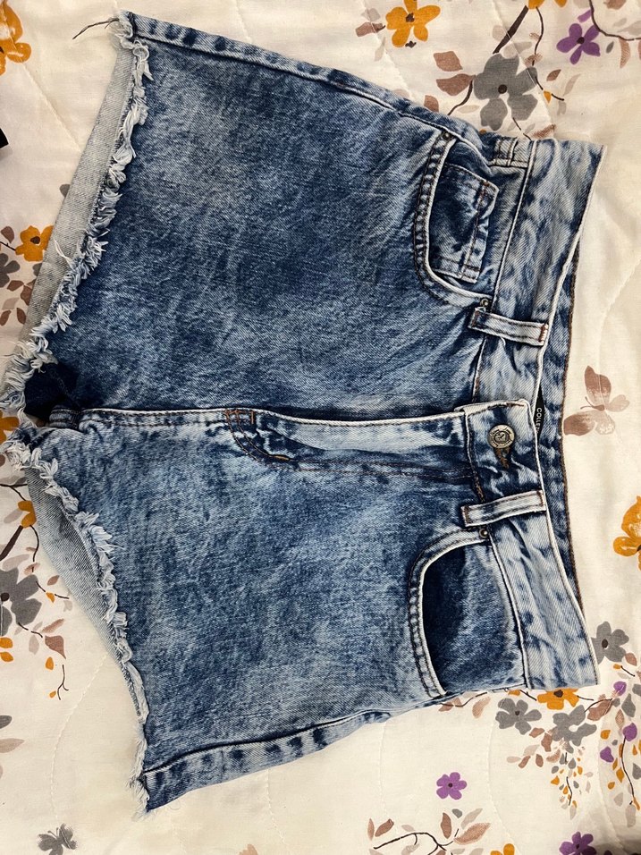 Düğmeli, gri batik desenli, bol kesim kadın kot şort. Mini boy ve yıpratılmış kenarlarıyla gündelik ve sokak stiline uygun rahat bir parça.