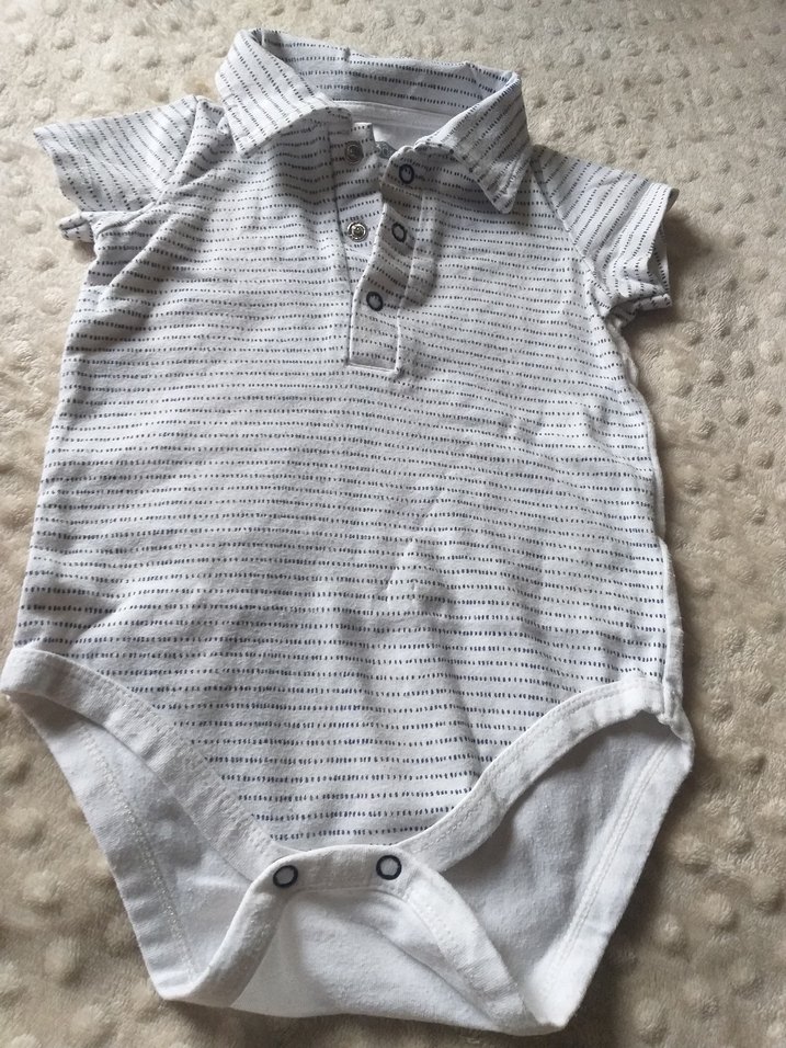 Düğmeli, kısa kollu, yakalı gri bebek erkek body. Yumuşak pamuk kumaştan üretilmiştir, rahatlık sağlar.boyu 39 santim iki kol arası 24 santim