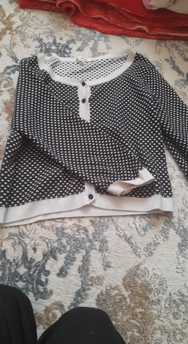 Düğmeli Gri Beyaz Mini Triko Kazak
