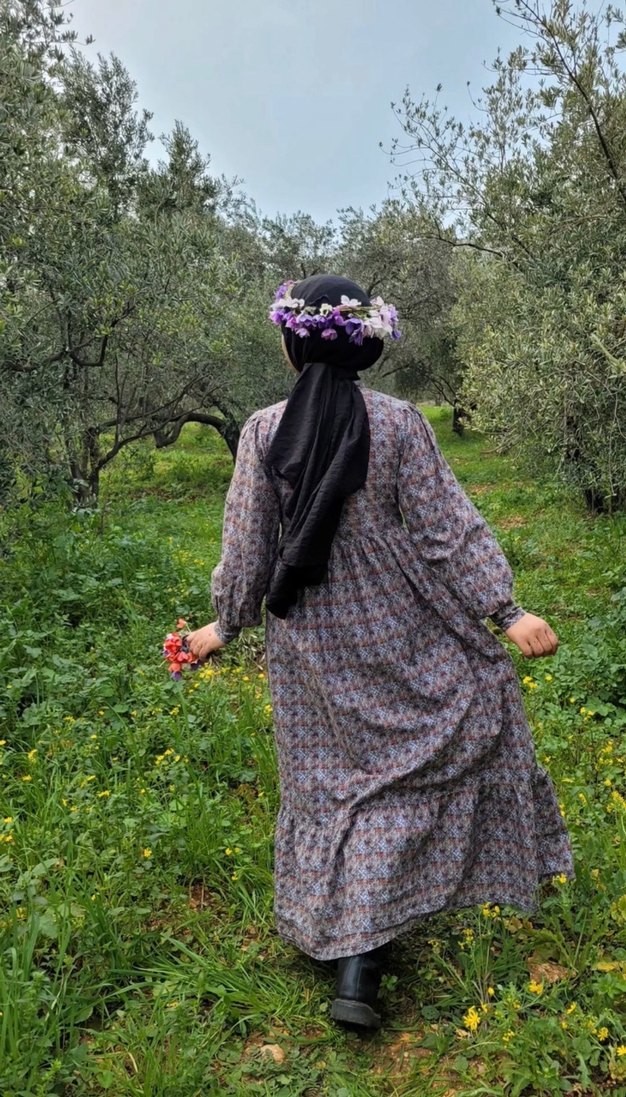 Düğmeli, yakalı ve uzun kollu bu bohem elbise, sentetik kumaştan yapılmış olup gri tie-dye desenli ve çok renkli detaylara sahiptir. Elbise özel dikimdir ve s-m bedene uygundur. Önünde,düğme yanlarında fırfır detayı vardır. Eteği iki kattan oluşmakta ve her kat büzgülü olduğundan etek ucu baya geniştir.