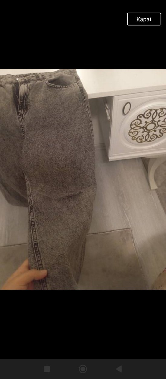 Düğmeli Gri Bol Kesim Kadın Denim Pantolon