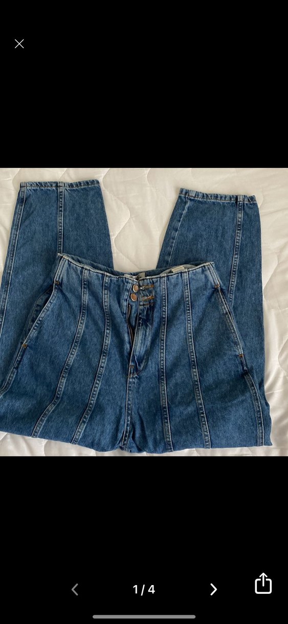 Düğmeli Gri Bol Kesim Kadın Kot Pantolon