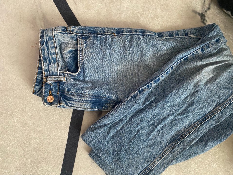 Gri renkte, düğmeli ve bol kesim midi uzunlukta kadın kot pantolon. Günlük rahat kullanım için uygundur ve normcore tarzını yansıtır.