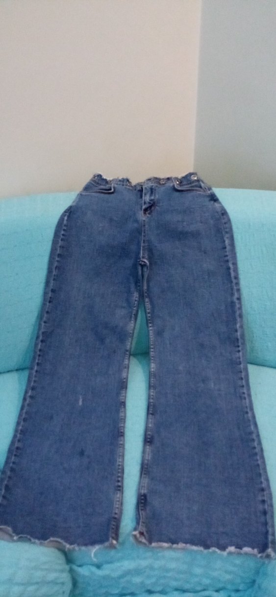 Gri renkte, düğmeli ve bol kesim midi uzunlukta kot pantolon. Günlük rahat sokak stili için uygundur. çok iyi durumda