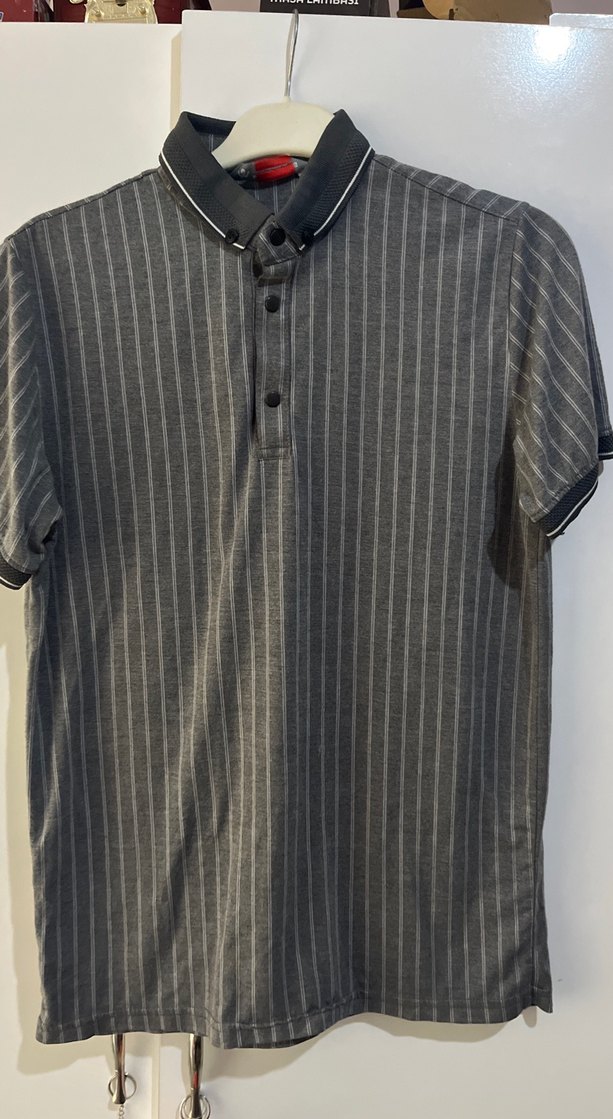 Düğmeli, yakalı ve kısa kollu bu erkek polo tişörtü, gri çizgili desene sahip ve sentetik kumaştan üretilmiştir. Regular fit ve günlük sokak stili için uygundur. BOYU 64 eni 44