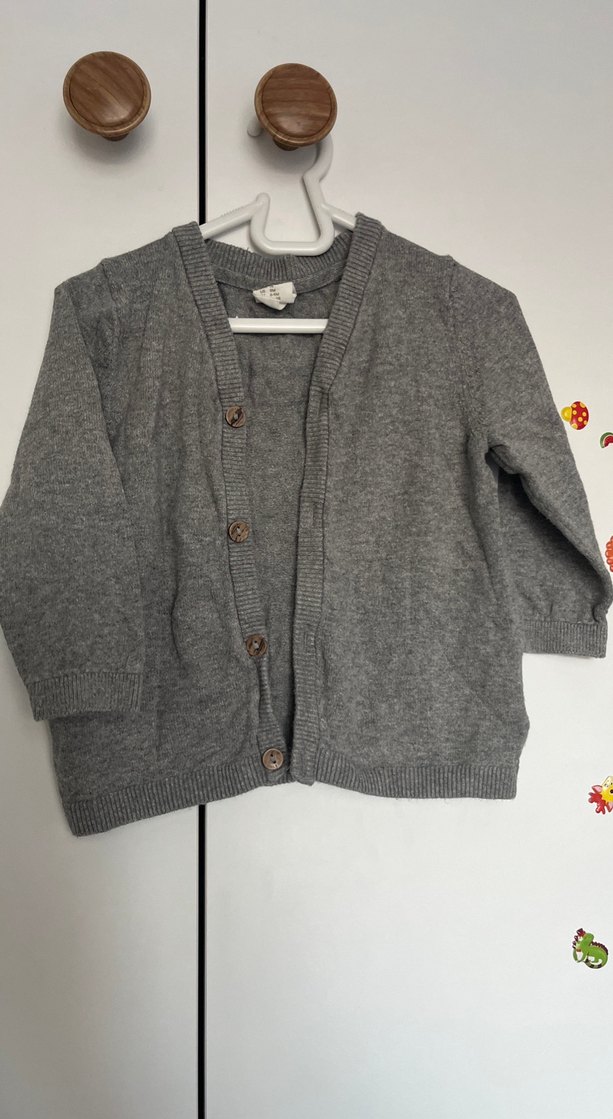 Düğmeli, uzun kollu ve bol kesim gri kız çocuk hırkası. Yumuşak ve konforlu örme kumaştan, desensiz tasarım. Çok hafif tülerme var.