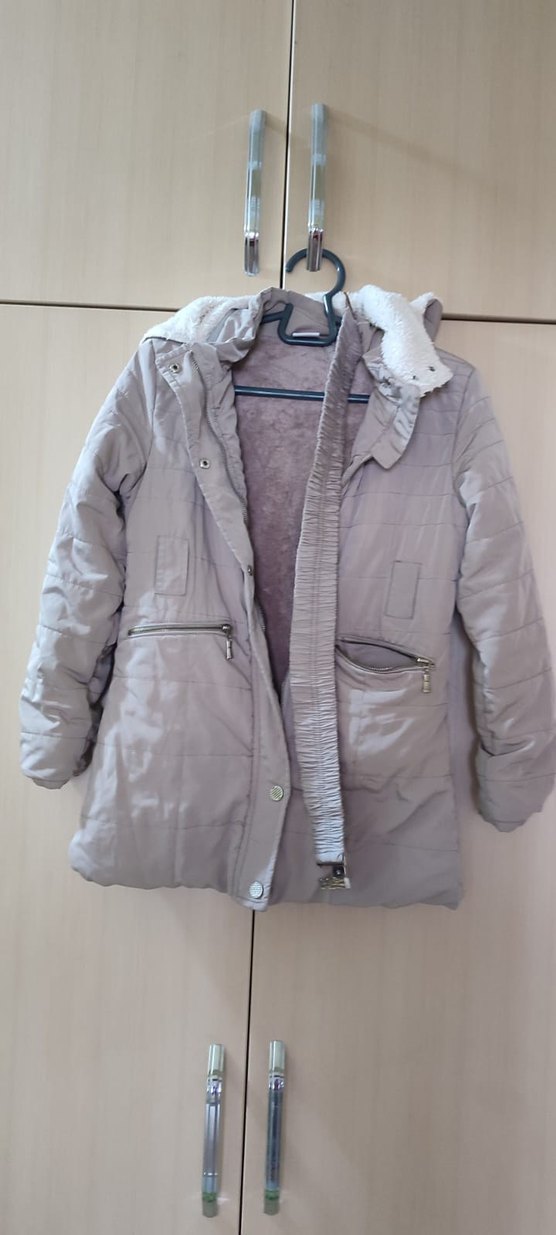 Düğmeli, gri renkli cocuk kışlık midi mont, uzun kollu ve rahat kesimdir. Yumuşak fleece kumaştan üretilmiş, cep fermuarları ve notched yaka detayına sahiptir. ❄️