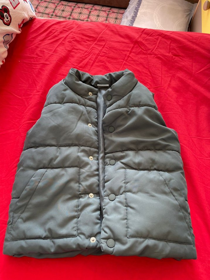 Düğmeli, yüksek yakalı ve kolsuz gri yelek. İnce kesim ve midi boyda, rahat ve şık bir sokak stili sunar. Yumuşak, sıcak kumaştan yapılmıştır ve cepleri vardır.