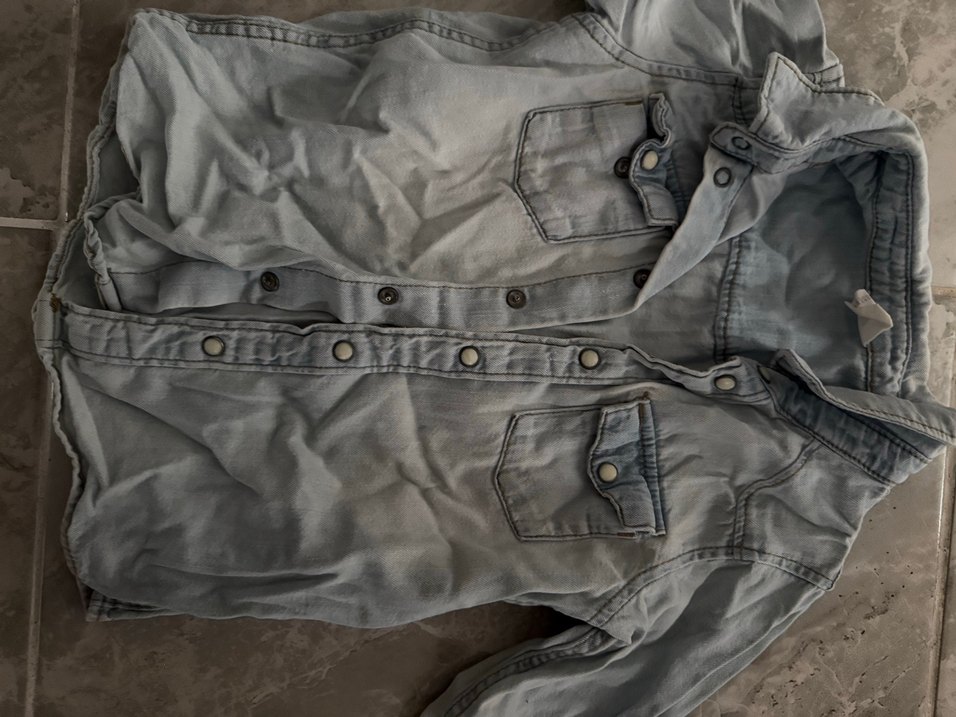 Düğmeli Gri Denim Erkek Çocuk Gömlek