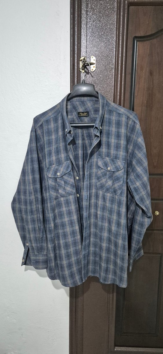 Uzun kollu, düğmeli gri denim erkek gömlek, günlük rahat kullanıma uygun kareli bir tasarım büyük beden.