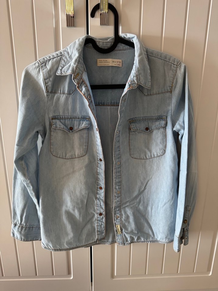 Gri renkli denim kumaştan, düğmeli, uzun kollu, notched lapel yakalı ve bol kesim gömlek. Rahat ve günlük sokak stiline uygun.