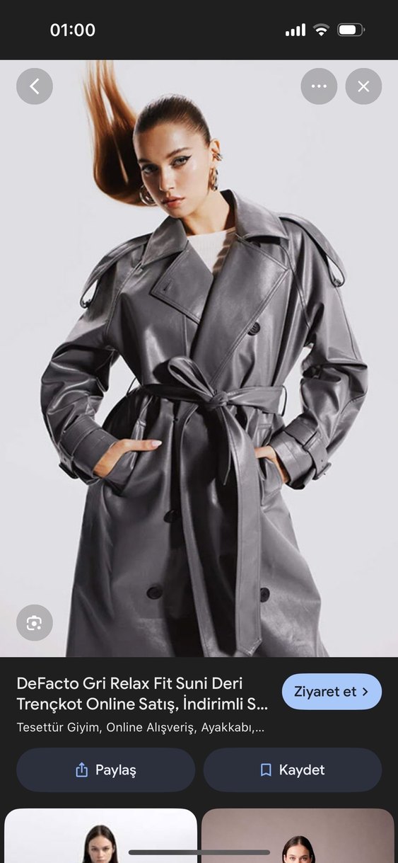 Düğmeli Gri Deri Trençkot