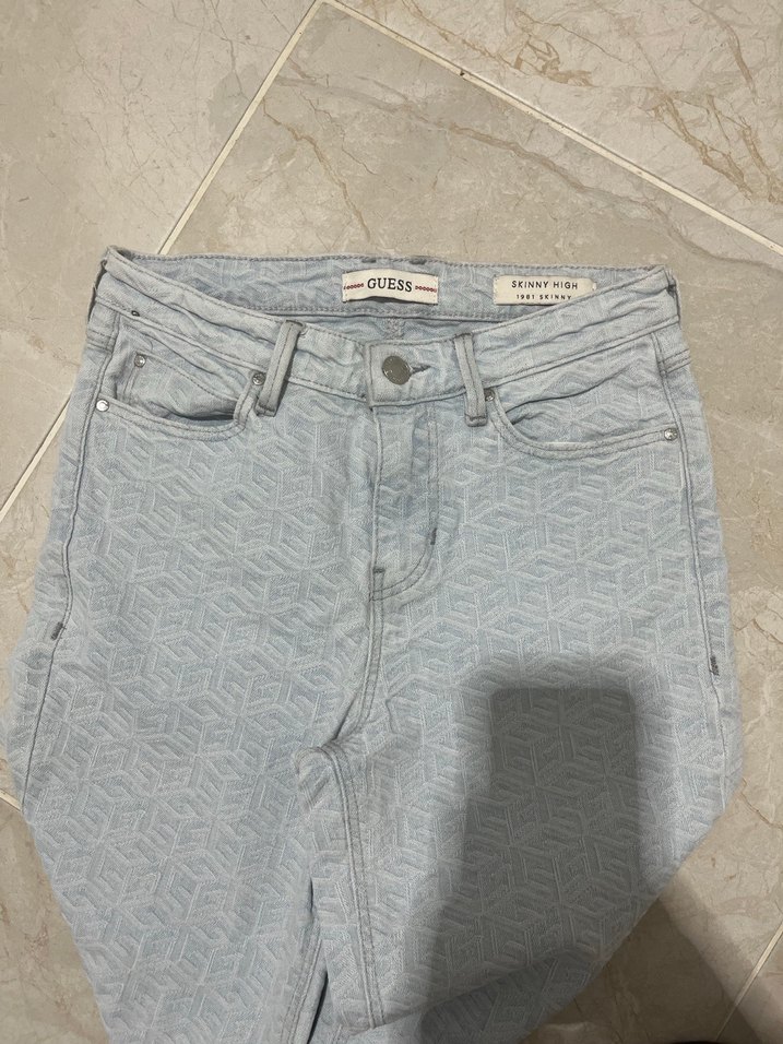 Düğmeli, baskılı desenli gri renkli, dar kesim kot pantolon, günlük rahat kullanıma uygundur. Sadece bir kez giyildi