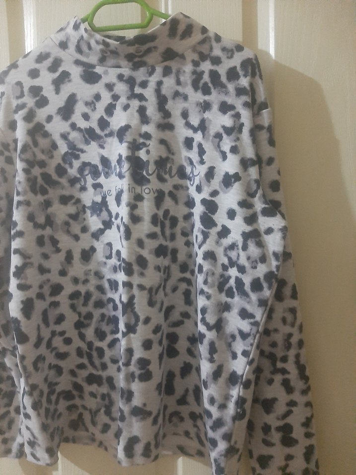 Düğmeli detaylı, gri desenli, uzun kollu, boğazlı, rahat kesim hamile bluzu. Günlük kullanıma uygundur.