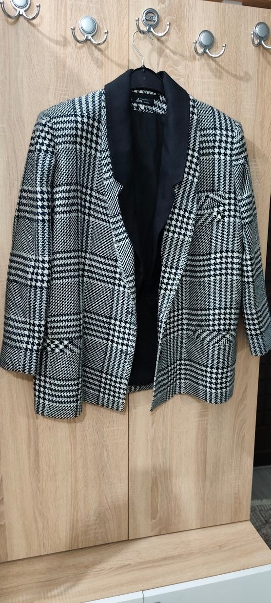 Düğmeli Gri Ekose Kadın Blazer Ceket