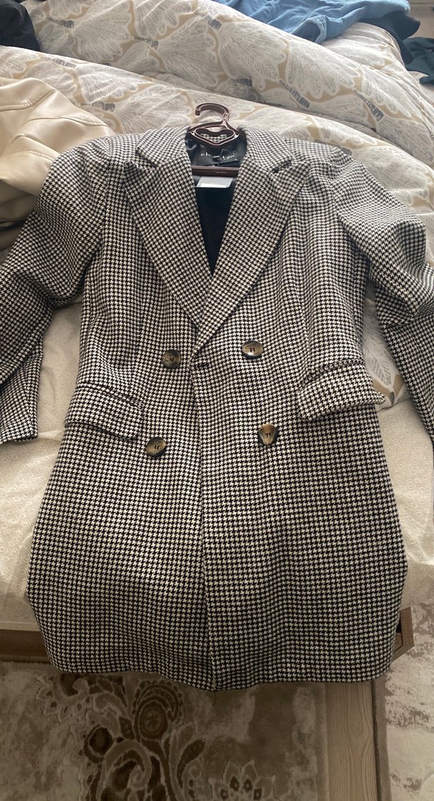 Düğmeli Gri Ekose Kadın Blazer Midi Boy