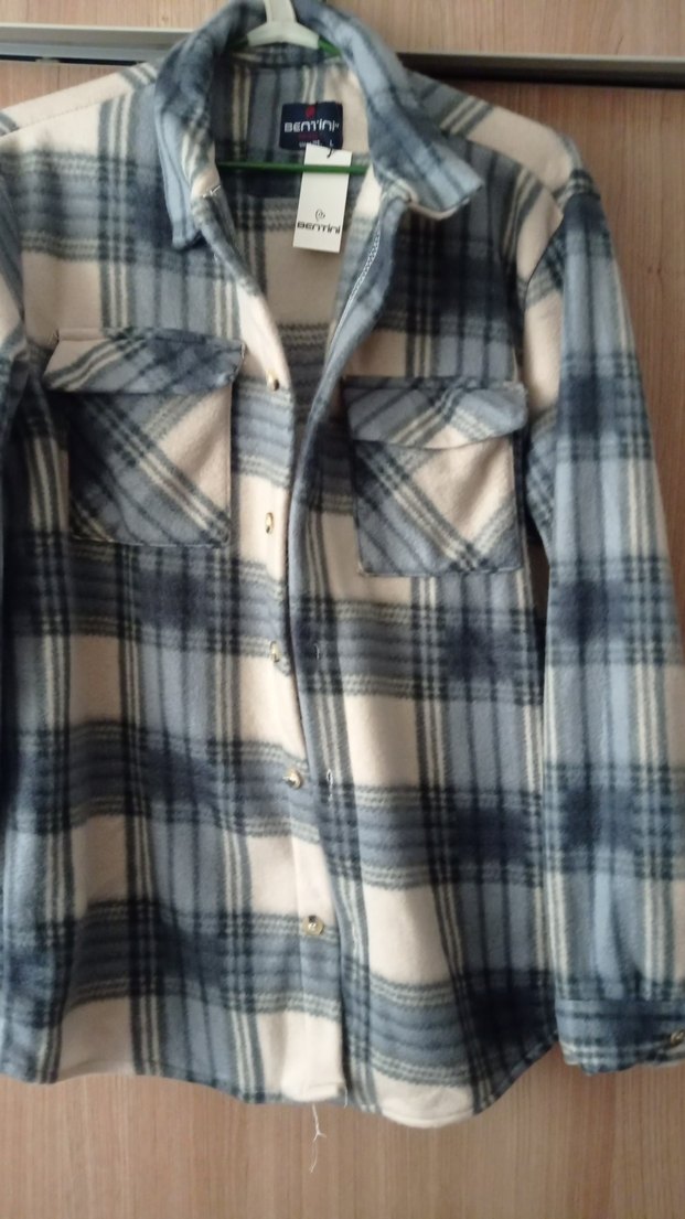 Düğmeli, uzun kollu ve yakalı bu kadın gömlek, gevşek kesim ve yumuşak dokusuyla gri ekose desenindedir. Rahat günlük kullanım için uygundur.