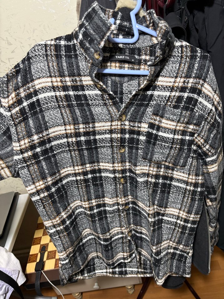 Düğmeli, yakalı ve ekose desenli gri kadın gömleği. Rahat kesim, uzun kollu, yumuşak dokulu kumaştan, günlük kullanıma uygun. Temiz ve defosuz