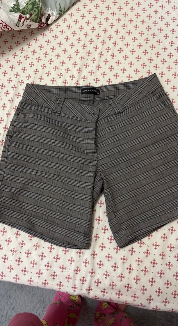 Düğmeli Gri Ekoseli Kadın Bermuda Şort