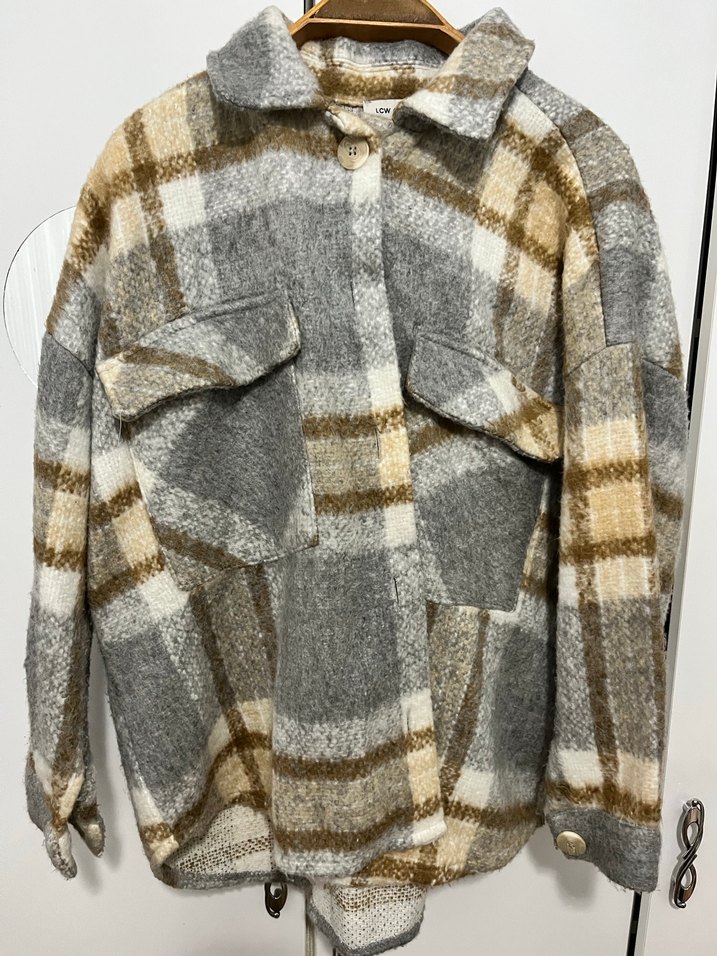 Oduncu gömleği tarzda,rahat bir ceket,hiçbir sıkıntısı yok gayet temiz