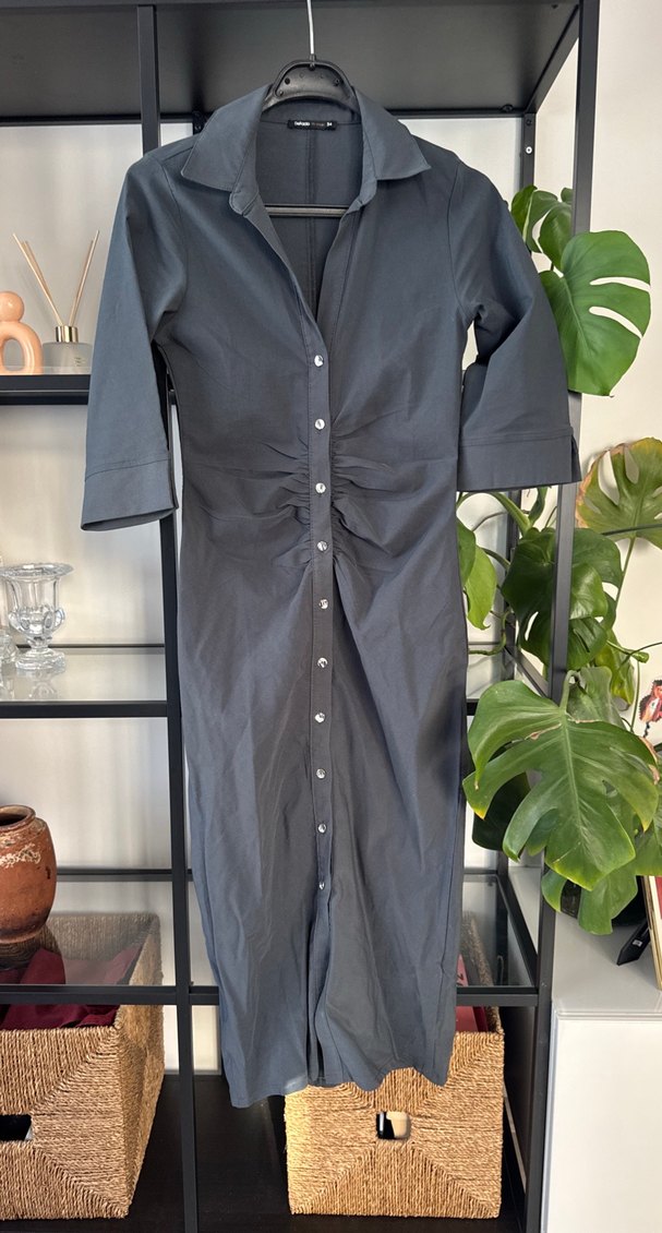 Düğmeli Gri Elbise