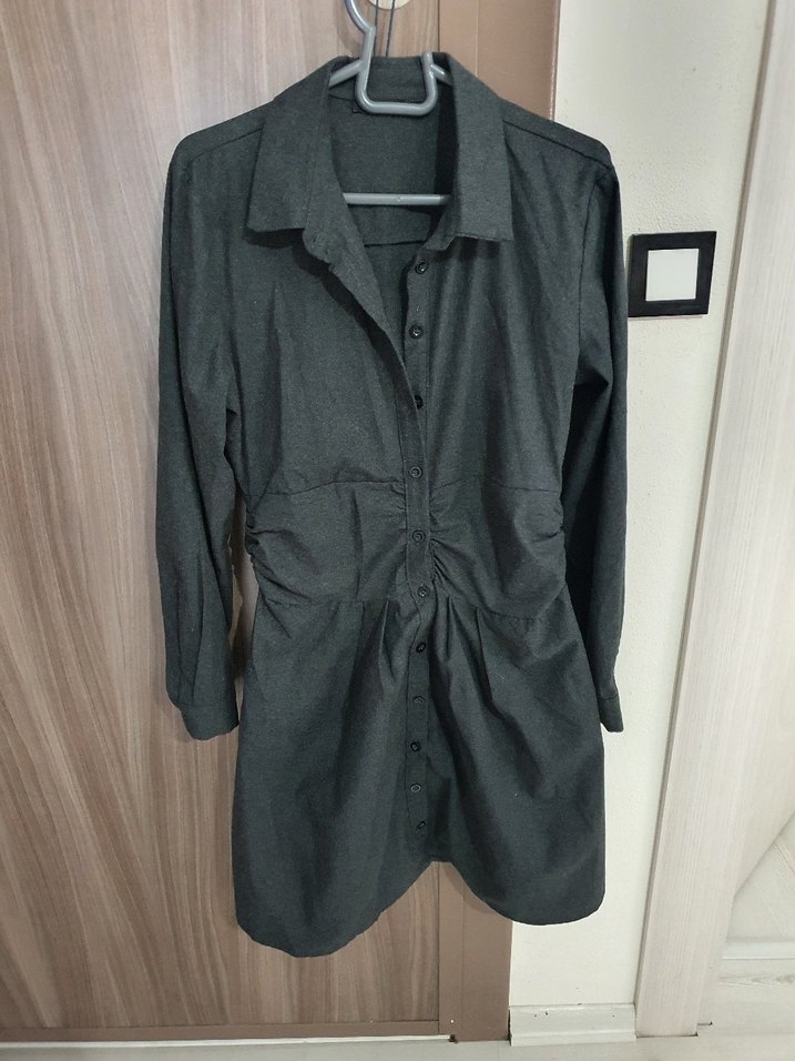 Düğmeli Gri Elbisw