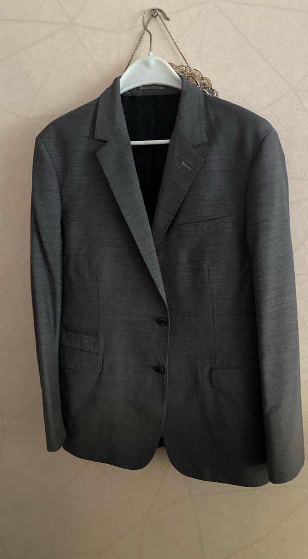 Düğmeli, normal boy, gri renkte erkek ceket. Klasik kesim, yaka notched lapel ve uzun kolludur. Ofis kullanımına uygun sade ve şık tasarım. George hogg marka