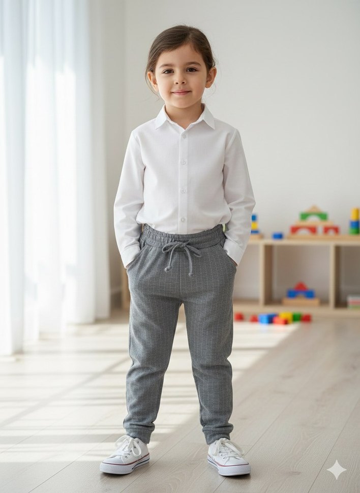 Düğmeli Gri Erkek Çocuk Eşofman Altı