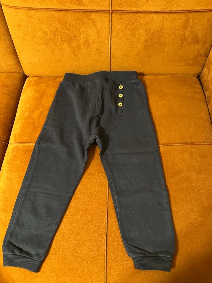 Düğmeli yan detaylı, gri renkli, bol kesim erkek çocuk eşofman altı. Yumuşak ve sıcak kumaştan üretilmiştir.