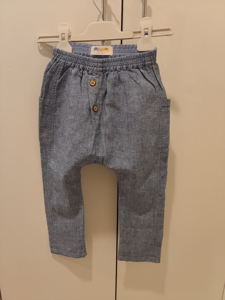 Gri renkte, düğmeli ve lastikli bel detaylı, bol kesim erkek çocuk kot pantolonu. Rahat ve gündelik kullanım için uygundur.