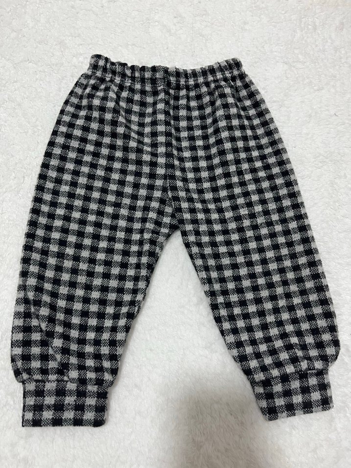 Düğmeli ve elastik bel ile gri renkli, yumuşak ve sıcak kumaştan erkek çocuk pantolonu. Rahat ve bol kesim.