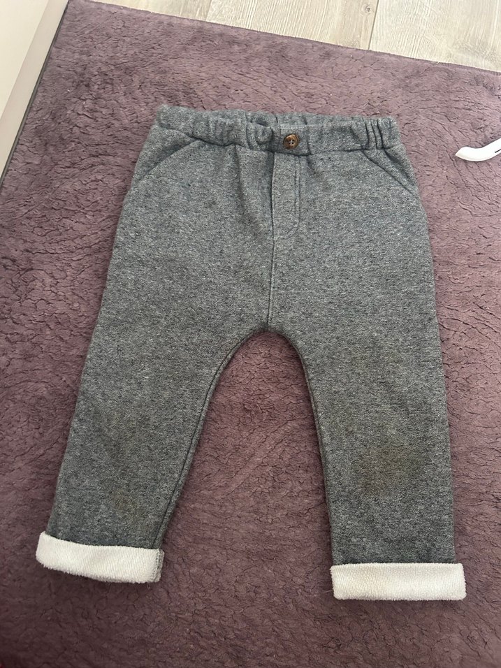 Düğmeli, bol kesim gri erkek çocuk pantolonu. Yumuşak ve sıcak kumaştan, sade tasarımlı ve kıvrık paçalı. Günlük kullanıma uygun.