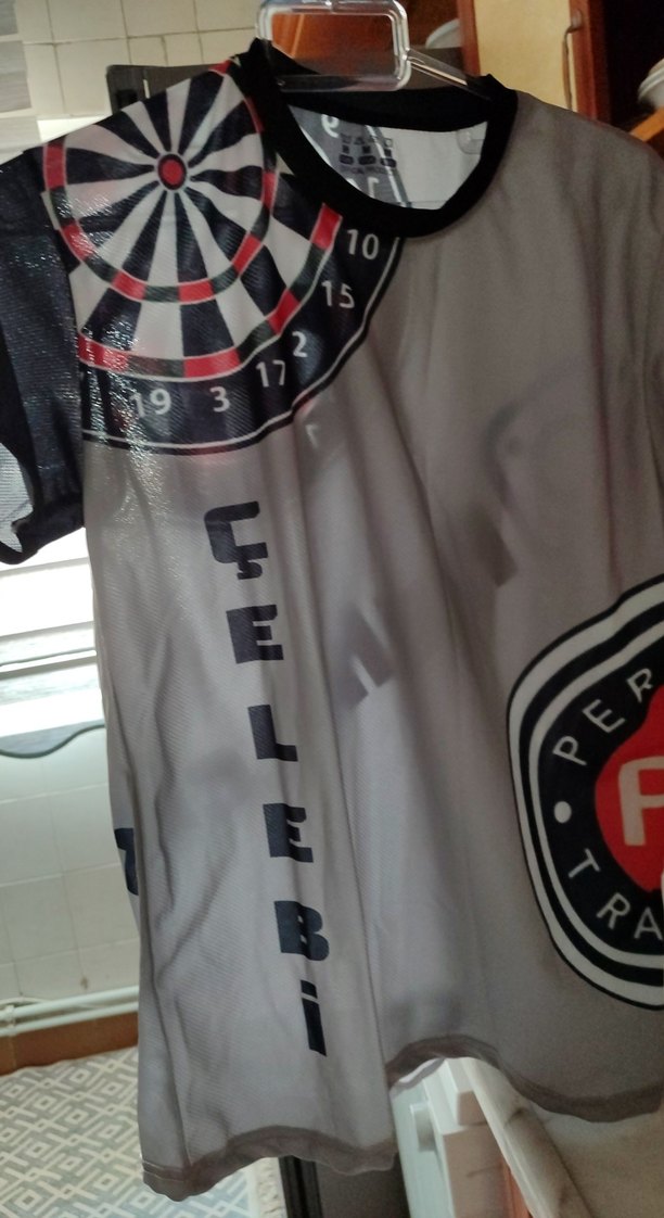 Düğmeli, baskılı desenli gri erkek spor tişörtü. Kısa kollu, bisiklet yaka ve sentetik kumaştan üretilmiştir. Streetwear ve athleisure tarzına uygundur.
