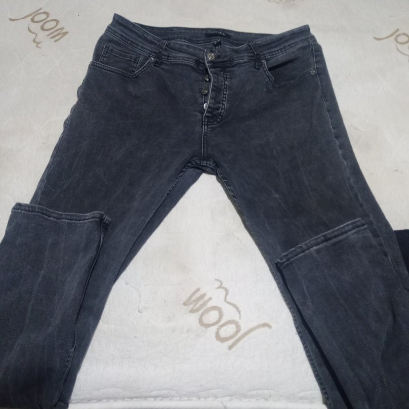 Düğmeli Gri Erkek Denim Pantolon