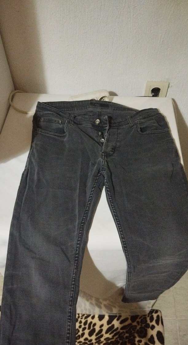 Düğmeli Gri Erkek Denim Pantolon