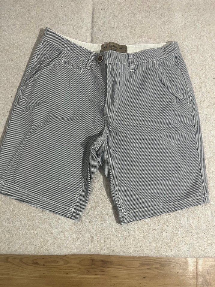 Düğmeli kapamalı, gri denim kumaştan, regular fit erkek şort. Sokak stili için uygun, dış mekan kullanımı için ideal.
