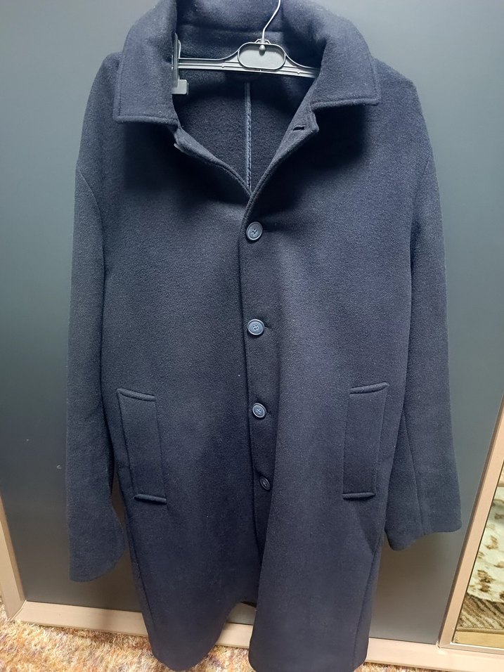 Düğmeli, gri renkte, uzun kollu erkek kaban. Normal boyda ve regular fit. Yumuşak, sıcak kumaştan yapılmıştır, günlük kullanıma uygundur.