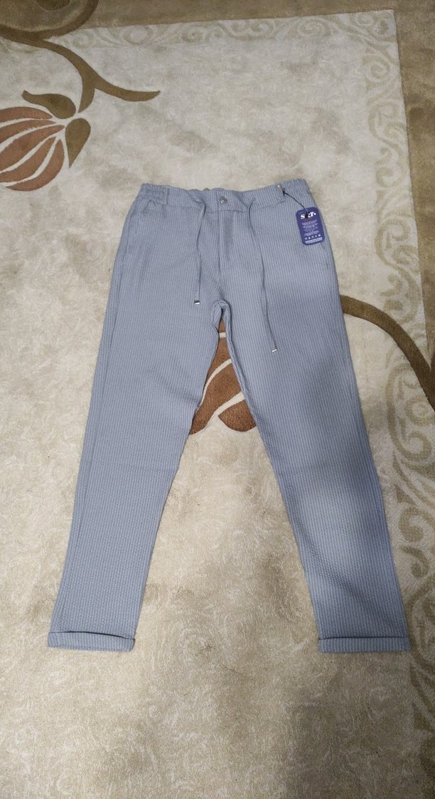 Düğmeli ve normal kesim gri erkek kumaş pantolon, yumuşak ve sıcak tutan polar kumaştan yapılmıştır. Midi boy ve desensizdir, günlük rahat kullanıma uygundur. M bedendir tam yanlarında lastikli kısım düğmeli ve fermuarlı yandan cepli arkasında ki cebi fermuarlı hafif likralı kumaş pantolon SRT markadır