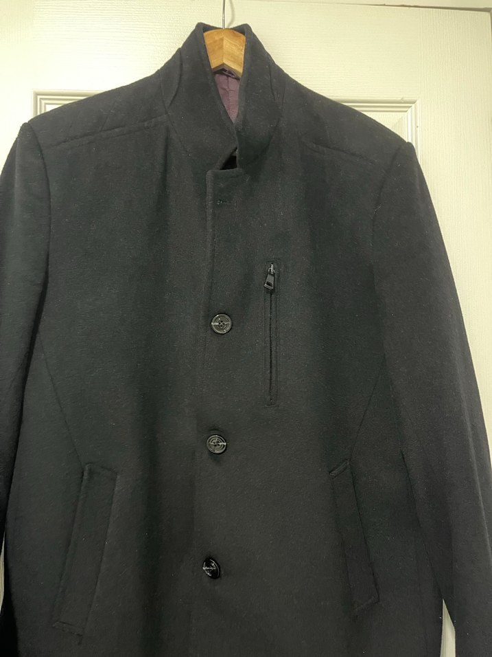 Düğmeli, gri renkte, uzun kollu ve midi boy erkek ceket. Soft ve sıcak kumaştan, normal kesim, ofis ve günlük kullanım için uygun.