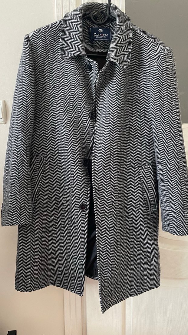 Düğmeli, yün kumaştan gri erkek midi kaban. Notch yakalı, regular fit ve uzun kolludur. 46 beden dar kalıp